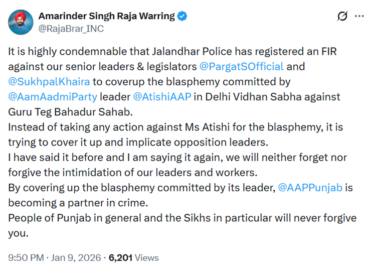 - पंजाब पुलिस ने की मामले में एंट्री: पंजाब की जालंधर पुलिस ने इकबाल सिंह नामक व्यक्ति की शिकायत पर कपिल मिश्रा और अन्य अज्ञात लोगों के खिलाफ FIR दर्ज की। जालंधर पुलिस कमिश्नरेट ने बयान जारी किया कि जांच में यह पाया गया है कि आतिशी ने गुरु शब्द नहीं बोला है और वीडियो को जानबूझकर एडिट किया गया था।