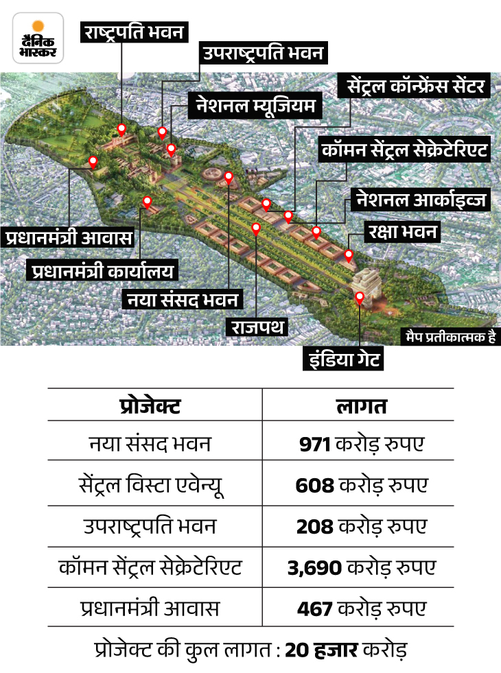 सेंट्रल विस्टा प्रोजेक्ट की घोषणा सितंबर, 2019 में हुई थी। 10 दिसंबर, 2020 को PM मोदी ने प्रोजेक्ट की आधारशिला रखी थी। सरकार ने पूरे प्रोजेक्ट के लिए 20 हजार करोड़ रुपए का बजट रखा है। कर्तव्य पथ के दोनों तरफ के इलाके को सेंट्रल विस्टा कहते हैं।