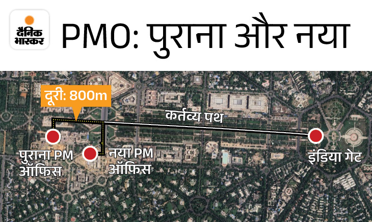दिल्ली के रायसीना हिल्स के पास देश के प्रधानमंत्री का नया ऑफिस लगभग तैयार है। प्रधानमंत्री नरेंद्र मोदी इस महीने के अंत तक नए ऑफिस से काम शुरू कर सकते हैं। सूत्रों ने दैनिक भास्कर को बताया कि PMO का काम लगभग पूरा हो चुका है। फाइनल फिनिशिंग जारी है।