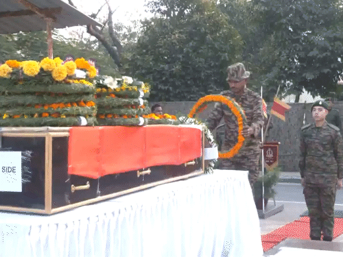 सेना के अधिकारियों ने आतंकियों से मुठभेड़ के दौरान शहीद हुए हवलदार गजेंद्र सिंह को आखिरी श्रद्धांजलि दी। बागेश्वर के हवलदार गजेंद्र सिंह गढ़िया का आज 20 जनवरी को सैन्य सम्मान के साथ अंतिम संस्कार होगा।हवलदार गजेंद्र सिंह का पार्थिव शरीर हेलिकॉप्टर से बागेश्वर लाया जाएगा। इसके बाद उन्हें उनके पैतृक गांव ग्राम पंचायत बिथ्थी (पाण्याती) पहुंचाया जाएगा।