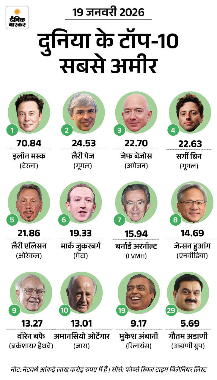 इलॉन मस्क दुनिया के सबसे अमीर आदमी हैं। उनकी नेटवर्थ 70 लाख करोड़ रुपए से ज्यादा है। वो टेस्ला (इलेक्ट्रिक कार), स्पेसएक्स (रॉकेट ), xAI (आर्टिफिशियल इंटेलिजेंस), न्यूरालिंक (ब्रेन इंप्लांट), द बोरिंग कंपनी (टनलिंग), और X (सोशल मीडिया प्लेटफॉर्म, पूर्व ट्विटर) के मालिक है।