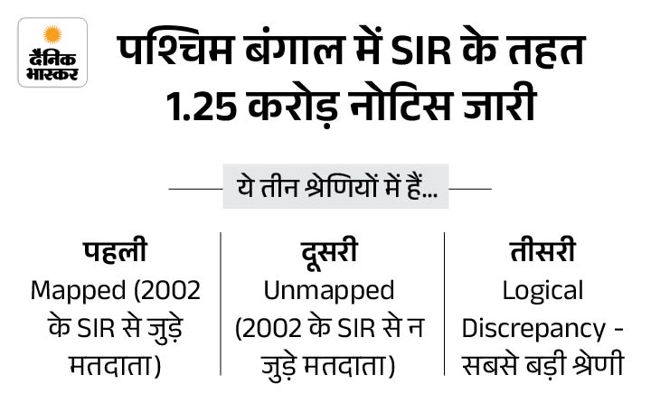 चुनाव आयोग ने राज्य में स्पेशल इंटेंसिव रिवीजन (SIR) के दौरान नाम, सरनेम, आयु में गड़बड़ी की वजह 1.25 करोड़ वोटर्स को लॉजिकल डिस्क्रेपेंसी नोटिस जारी किया था।