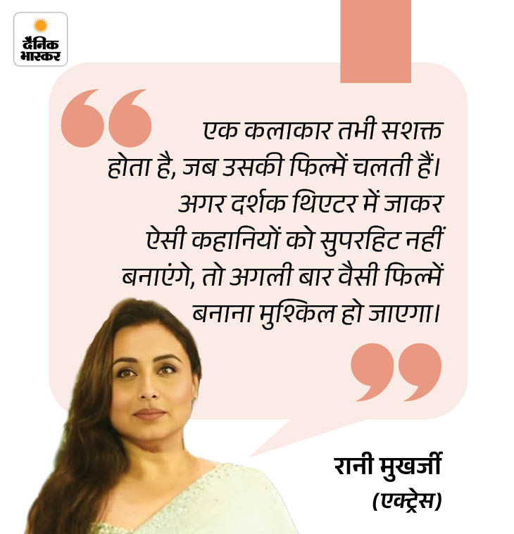 रानी मुखर्जी कहती हैं- मुझे कभी एक्ट्रेस बनना नहीं था। बचपन से ये सपना नहीं था कि मुझे ये अचीव करना है। बस मुझे मम्मी-पापा को एक बहुत ही बेहतरीन जिंदगी देनी थी। मैं बस चांस से एक्ट्रेस बनी। फिर अपने इंसानी और औरत वाले इंस्टिंक्ट को फॉलो किया। किसी को कुछ प्रूव नहीं करना था। बस दर्शकों तक अच्छी कहानियां और स्ट्रॉन्ग फीमेल कैरेक्टर्स पहुंचाने थे।