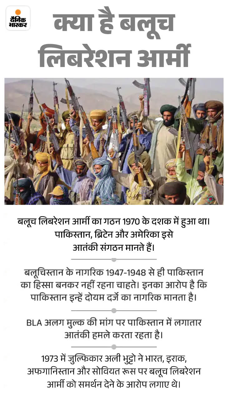 बलूच लिबरेशन आर्मी (BLA) बलूचिस्तान का सबसे सक्रिय अलगाववादी संगठन माना जाता है। पिछले कुछ वर्षों में बलूच अलगाववादियों ने दूसरे प्रांतों से आए पाकिस्तानी मजदूरों और विदेशी कंपनियों पर हमले तेज कर दिए हैं। उनका आरोप है कि ये लोग और कंपनियां बलूचिस्तान के संसाधनों का शोषण कर रही हैं।