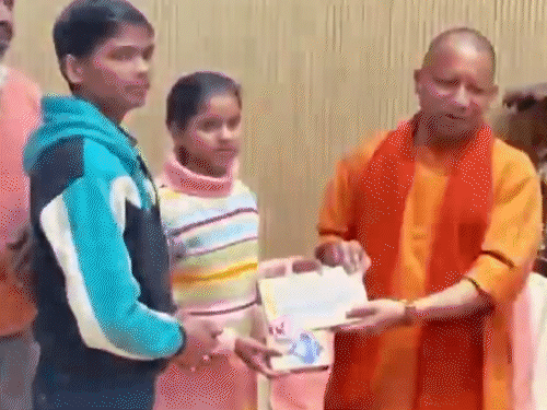 90 किमी चलकर योगी से मिलने पहुंची मूक-बधिर:पैरों में छाले देख CM भावुक, इशारों में कहा- पुलिस बनकर गुंडों को मारूंगी