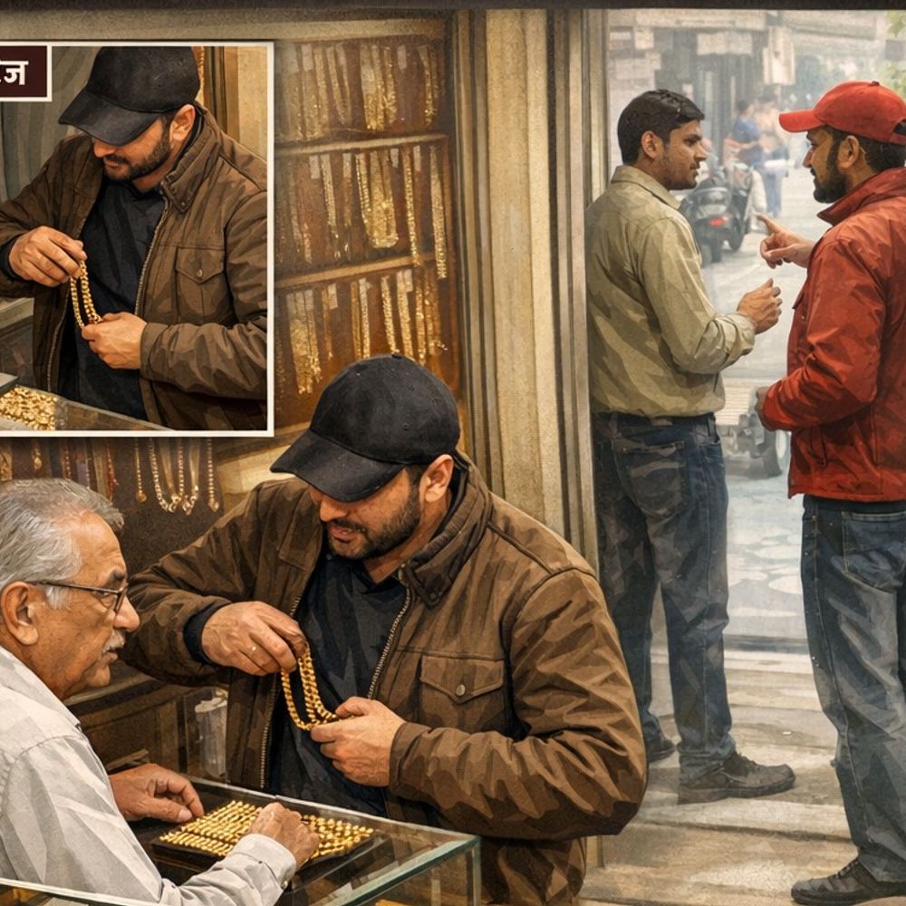 आरोपी ने चेन का वजन और क्वालिटी पूछते हुए मनीष जैन को बातों में उलझाए रखा। इसी बीच बाहर खड़ा उसका साथी दुकान के गेट पर आकर कर्मचारी से किसी दुकान का पता पूछने लगा, जिससे कर्मचारी भी व्यस्त हो गया। मौका पाकर अंदर मौजूद युवक ने चेन की एक पुड़िया अपनी अंगुलियों में छिपाकर जेब में रख ली और कुछ देर बाद वहां से चला गया।