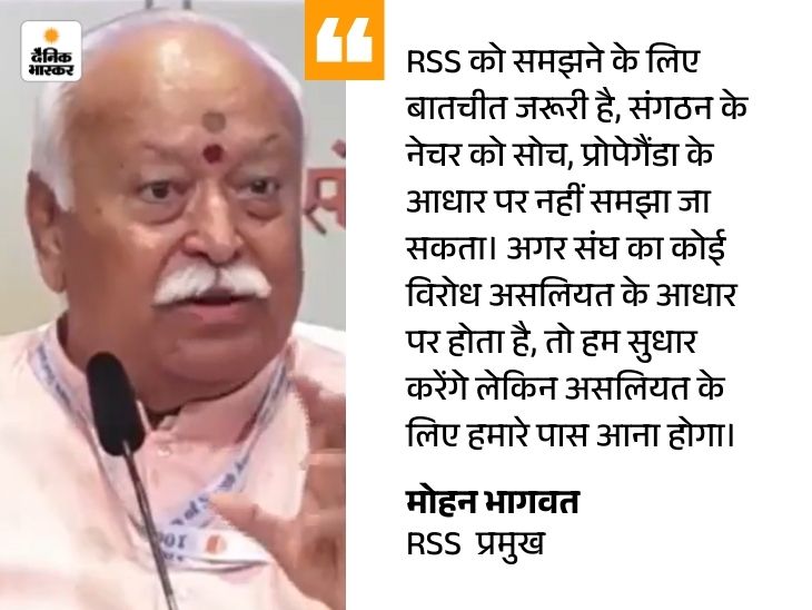 उन्होंने कहा कि RSS किसी के खिलाफ नहीं है और न ही उसे सत्ता या पावर की इच्छा है। संघ राजनीति में सीधे तौर पर शामिल नहीं है, हालांकि संघ के कुछ लोग राजनीति में सक्रिय हैं। भागवत ने कहा,