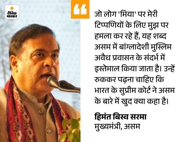मिया बांग्ला भाषी मुसलमानों के लिए इस्तेमाल होने वाला एक अपमानजनक शब्द है। असम सीएम के मुताबिक वे मूल निवासियों के संसाधनों, नौकरियों और जमीन पर कब्जा कर रहे हैं।