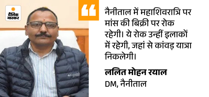 उत्तराखंड के 5 जिलों में महाशिवरात्रि पर मीट की बिक्री पर रोक रहेगी। इनमें नैनीताल, रुद्रप्रयाग, हरिद्वार, ऊधम सिंह नगर और उत्तरकाशी के कई इलाके शामिल है। इसके अलावा कांवड़ यात्रा के दौरान जो भी रूट पड़ेगा उन रास्तों पर मीट की दुकान बंद रखनी होगी।