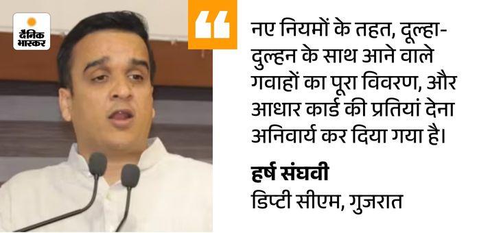 इस संबंध में उपमुख्यमंत्री हर्ष संघवी ने सदन में कहा कि राज्य सरकार प्रेम विवाह के खिलाफ नहीं है, लेकिन लड़कियों की सुरक्षा, पारदर्शिता और कानूनी प्रक्रिया को मजबूत करने के लिए विवाह पंजीकरण नियमों में संशोधन आवश्यक हो गया है।