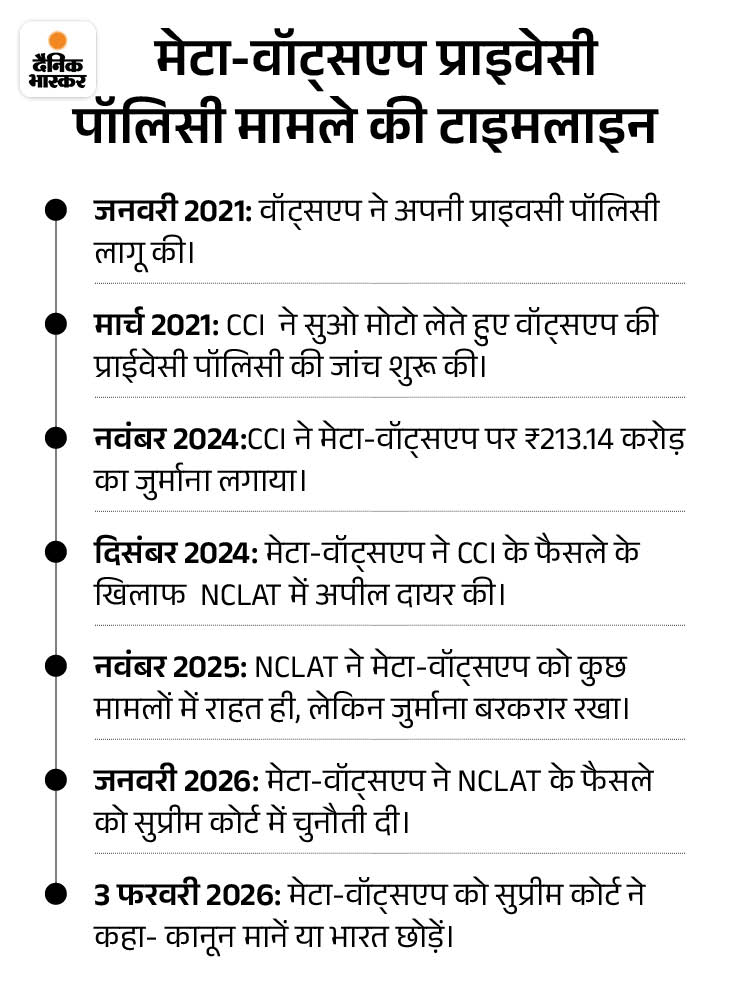 3 जनवरी 2026: सुप्रीम कोर्ट बोला- मेटा-वॉट्सएप कानून मानें या भारत छोड़ें