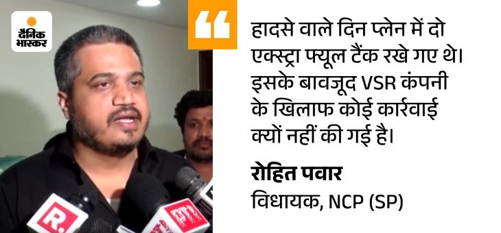 इससे पहले रोहित पवार ने सेंट्रल एविएशन मिनिस्टर के. राममोहन नायडू को पद से हटाने की मांग की थी। उन्होंने आरोप लगाया कि नायडू VSR कंपनी को बचा रहे हैं। रोहित ने 18 फरवरी को मुंबई में एक प्रेस कॉन्फ्रेंस में कहा- जिस VSR कंपनी का लियरजेट विमान 28 जनवरी को बारामती में क्रैश हुआ, उसे बचाने की कोशिश हो रही है। एविएशन मिनिस्टर नायडू और उनकी पार्टी (तेलुगु देशम पार्टी) के सीनियर लीडर कंपनी के मालिकों के करीबी हैं।