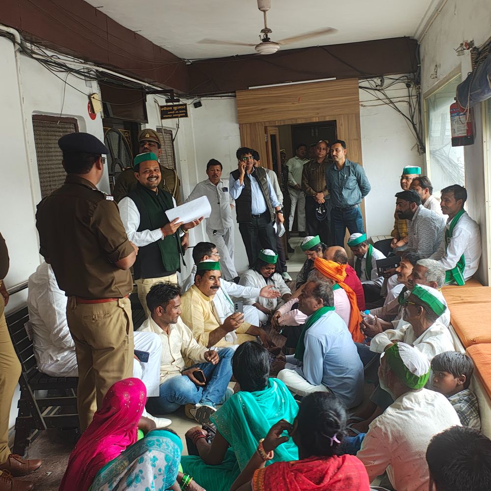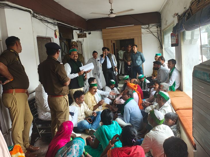 लखनऊ नगर निगम में भारतीय किसान यूनियन का प्रदर्शन:निजी बिल्डर पर जमीन कब्जा करना का लगाया आरोप, मौके पर पहुंची पुलिस