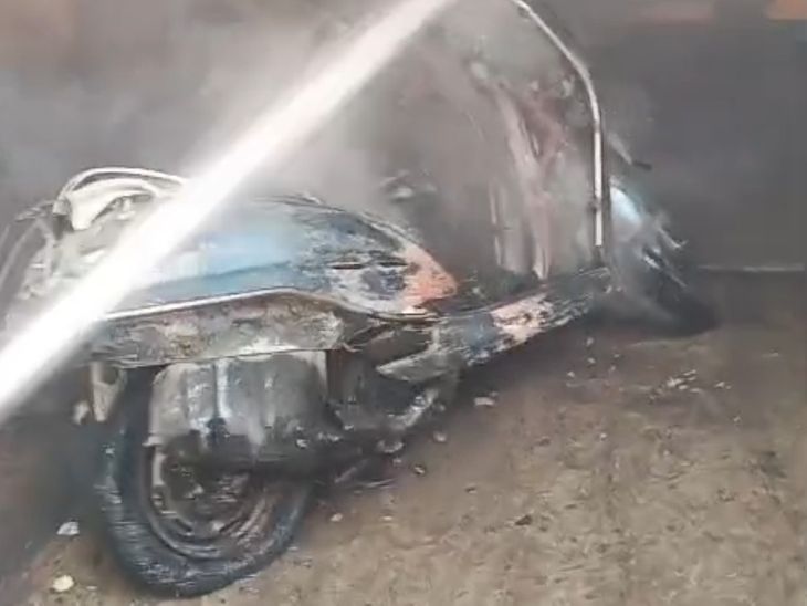 अपार्टमेंट पार्किंग में आग लगने से तीन वाहन जले:काला धुंआ देख बाहर भागे लोग, कोई जनहानि नहीं