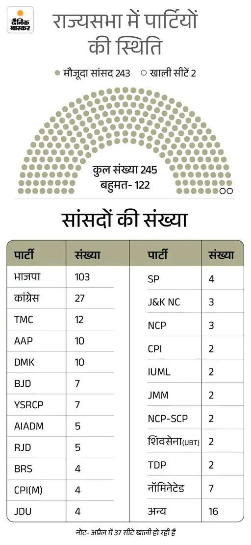 चुनाव आयोग ने 18 फरवरी को 10 राज्यों की 37 राज्यसभा सीटों पर चुनाव की तारीखों का ऐलान किया था। 37 सीटों के लिए 16 मार्च को चुनाव होना है। जो सीटें खाली हो रही हैं, उनमें 12 एनडीए के पास हैं, 25 पर विपक्षका कब्जा है।