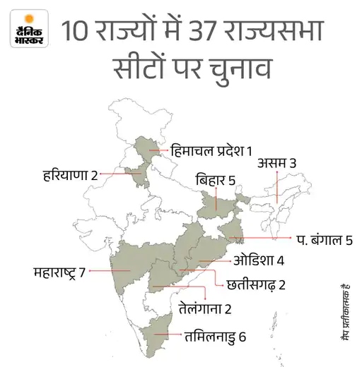 10 राज्यों की 37 राज्यसभा सीटों पर 16 मार्च को चुनाव कराया जाएगा। 16 मार्च को सुबह 9 बजे से शाम 4 बजे के बीच वोटिंग होगी और उसी दिन शाम 5 बजे वोटों की गिनती की जाएगी।