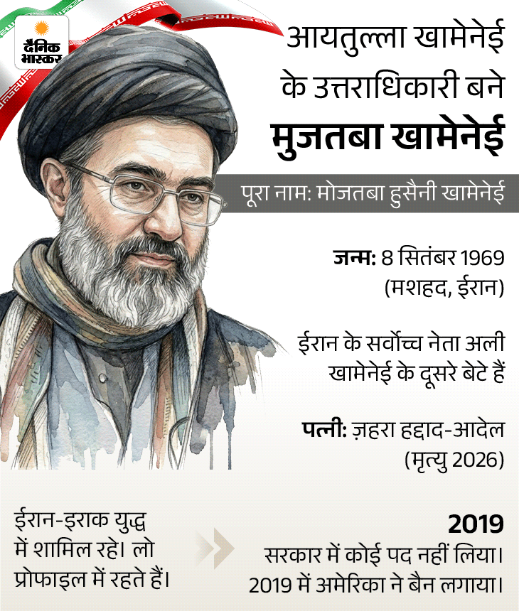 ईरान जंग के पांचवे दिन पूर्व सुप्रीम लीडर अली खामेनेई के बेटे मुजतबा खामेनेई को नया सुप्रीम लीडर चुन लिया गया है। मीडिया रिपोर्ट्स के मुताबिक 88 मौलवियों वाली एक्सपर्ट्स असेंबली ने उन्हें चुना है। अली खामेनेई की 28 फरवरी को अमेरिका-इजराइल के हमले में मौत हो गई थी।