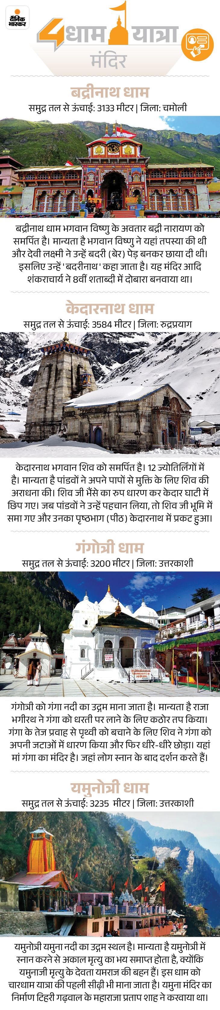 वहीं उत्तरकाशी के गंगोत्री धाम और यमुनोत्री धाम के कपाट 19 अप्रैल को अक्षय तृतीया के पावन पर्व पर विधि-विधान से भक्तों के लिए खोले जाएंगे।
