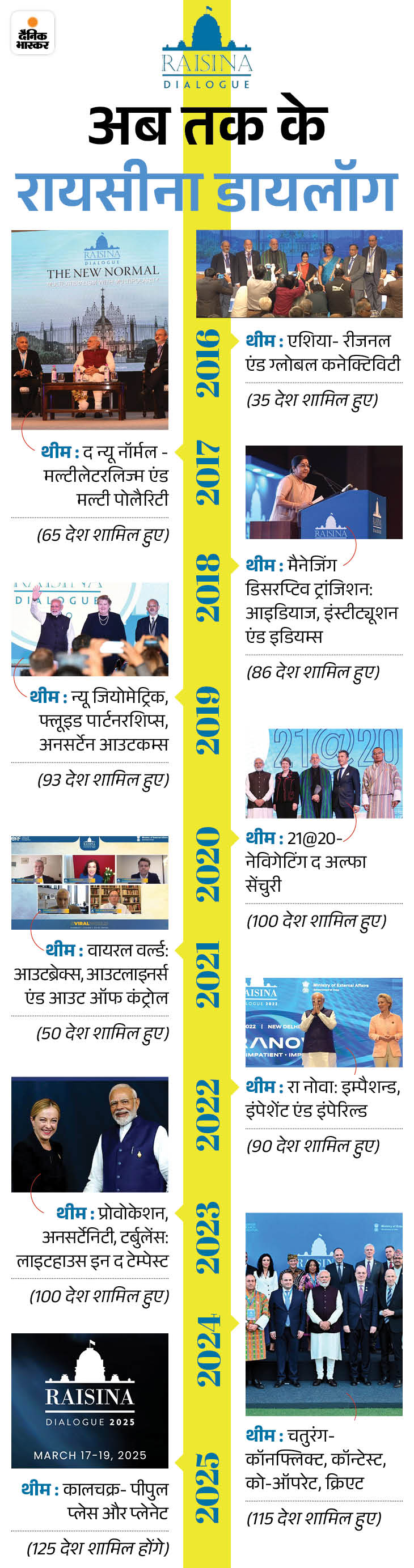 रायसीना डायलॉग में इंटरनेशनल कम्युनिटी के सामने देश-दुनिया के सबसे चुनौतीपूर्ण मुद्दों पर बातचीत की जाती है। इस बार वैश्विक सुरक्षा, आर्टिफिशियल इंटेलिजेंस, इकोनॉमिक सिक्योरिटी और क्लाइमेट चेंज जैसे मुद्दों पर चर्चा की जा रही है।