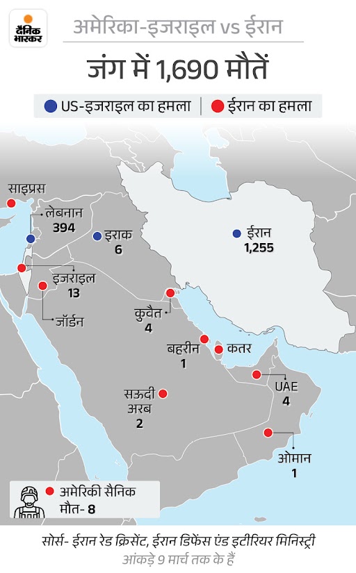 वहीं अमेरिकी रक्षा विभाग पेंटागन ने संसद को बताया कि ईरान जंग के शुरुआती 6 दिन में अमेरिका ने करीब 11.3 अरब डॉलर (लगभग ₹1 लाख करोड़) खर्च कर दिए। इनमें से करीब 5 अरब डॉलर (लगभग ₹45 हजार करोड़) थियार और गोला-बारूद पर खर्च हुए।
