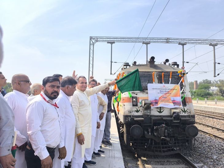 हिसार-इंदौर एक्सप्रेस ट्रेन का हांसी में ठहराव शुरू:यात्रियों की वर्षों पुरानी मांग हुई पूरी; विधायक भयाना ने दिखाई झंडी