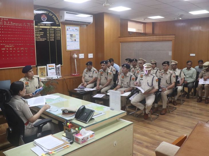 हांसी में अपराध नियंत्रण पर ज्वाइंट कमिश्नर की बैठक:संगीता कालिया ने क्षेत्र में गश्त बढ़ाने के दिए निर्देश, तस्करों पर कार्रवाई के आदेश