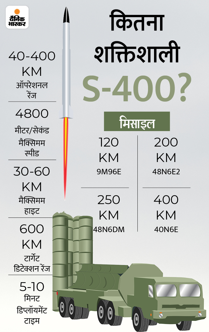- S-400 सिस्टम लंबी दूरी के हवाई खतरों से सुरक्षा देगा।
