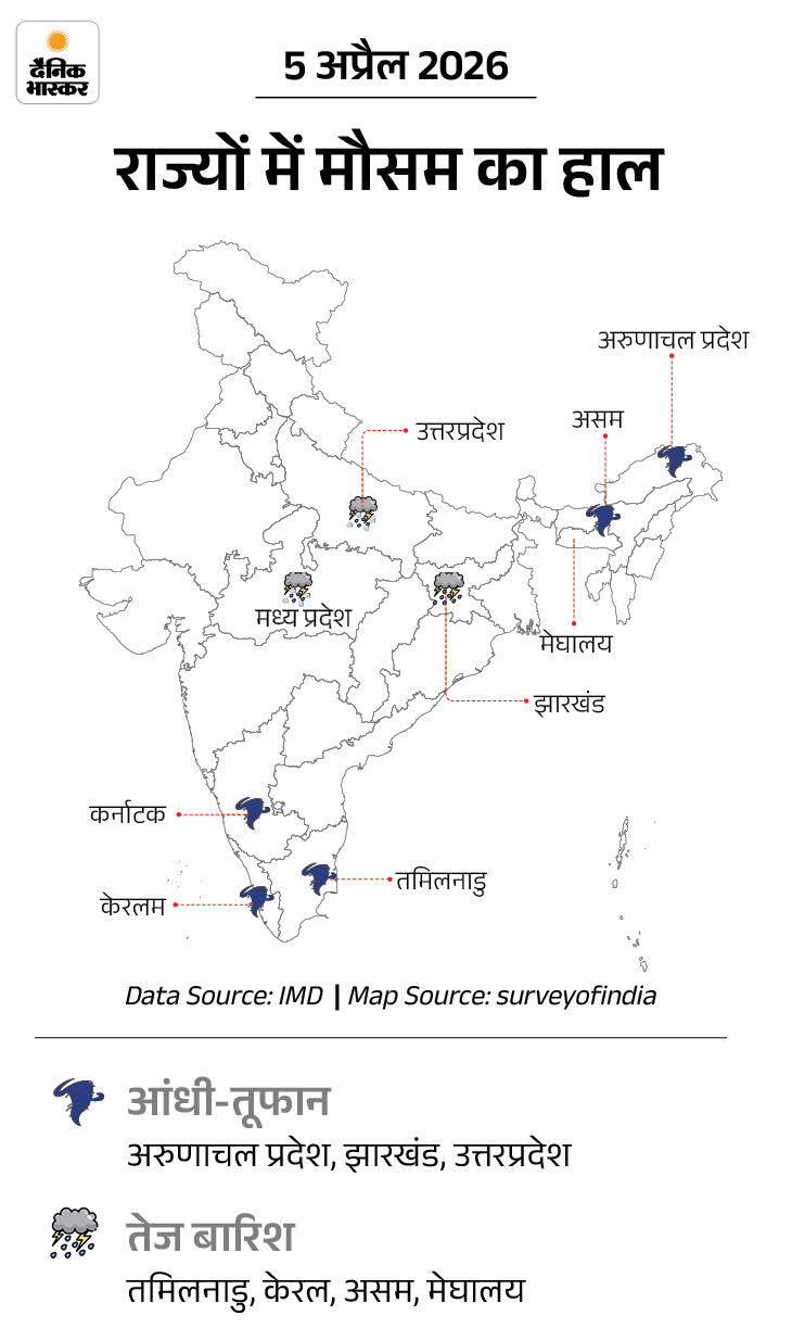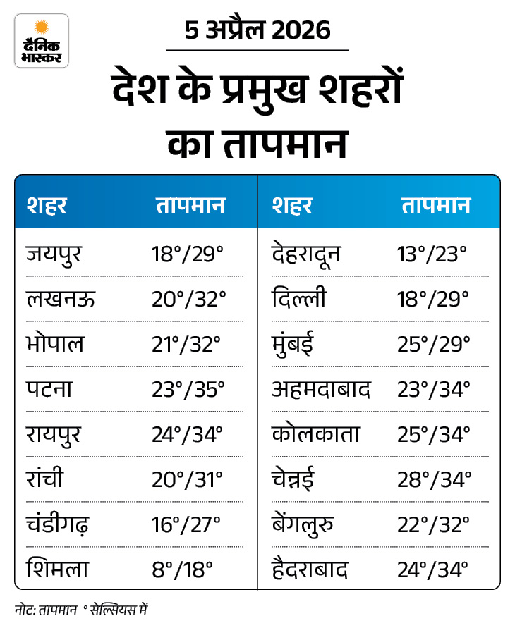 दिल्ली-NCR, हरियाणा, पश्चिमी यूपी और MP में शनिवार को मौसम अचानक बदल गया। IMD ने यलो अलर्ट जारी करते हुए तेज बारिश, ओले और 60-70 किमी/घंटा की रफ्तार से हवाएं चलने की चेतावनी दी है। इसकी वजह सक्रिय पश्चिमी विक्षोभ है, जिससे 1000 किमी तक लंबे घने बादल बने हैं।