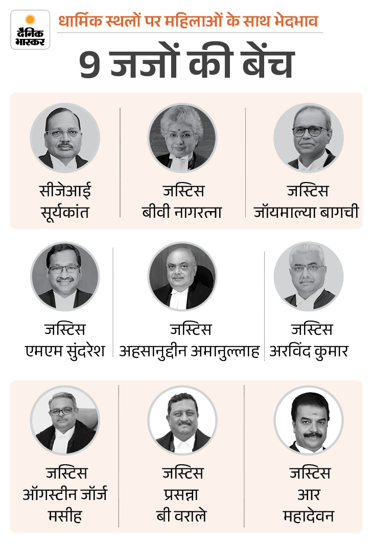 धार्मिक स्थलों पर महिलाओं के साथ भेदभाव का मामला बीते 26 सालों से देश की अदालतों में हैं। सुप्रीम कोर्ट की 9 जजों की संविधान पीठ आज से 22 अप्रैल तक 50 से ज्यादा पेंडिंग याचिकाओं पर अंतिम सुनवाई करेगी।
