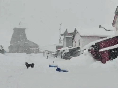 उत्तराखंड के केदारनाथ धाम में लगातार हो रही भारी बर्फबारी से पूरा क्षेत्र बर्फ की मोटी परत से ढंक गया है।