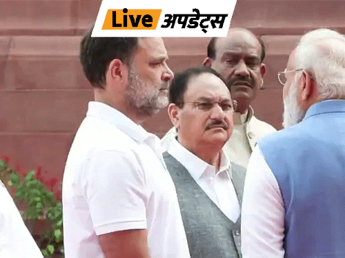 संसद परिसर में चर्चा करते दिखे पीएम मोदी और राहुल गांधी; ज्योतिबा फुले को श्रद्धांजलि देने पहुंचे थे दोनों नेता