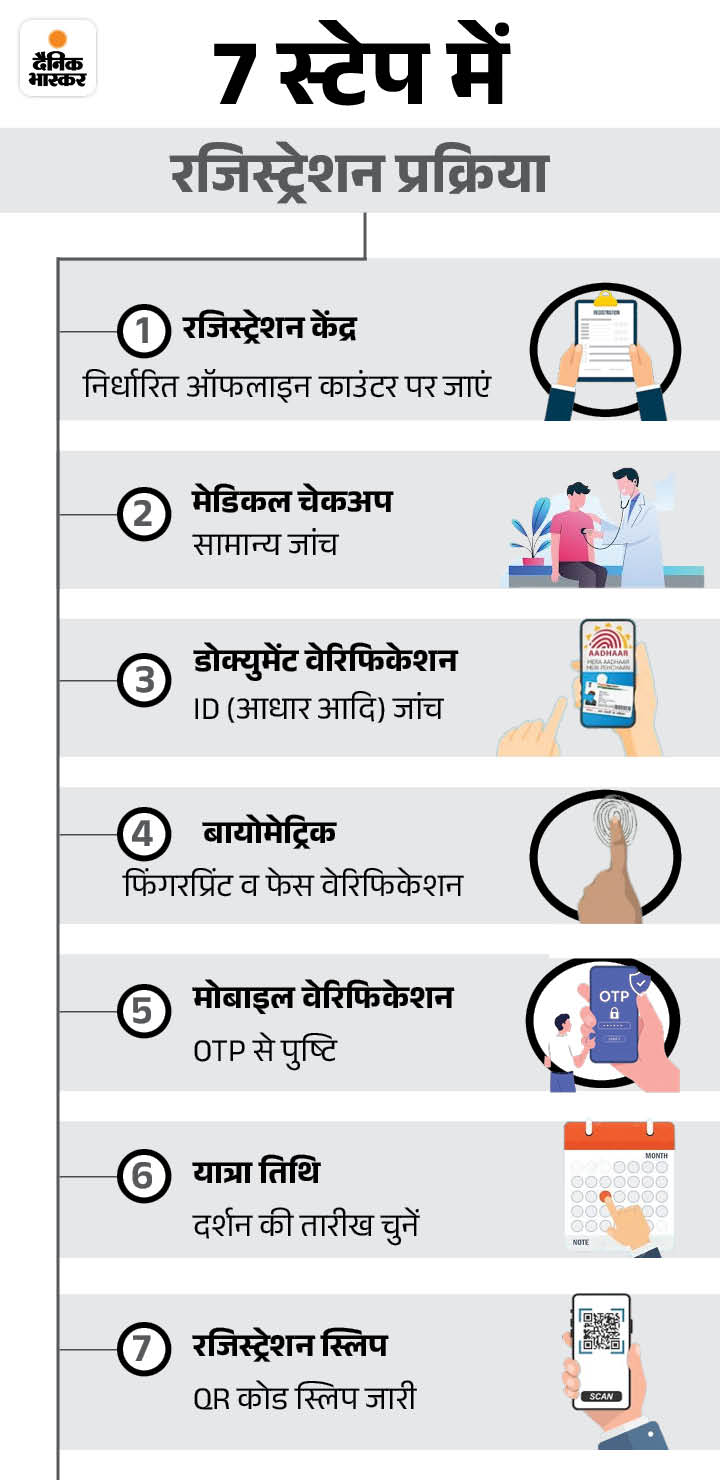 यदि आप अपने किसी परिचित या परिवार के सदस्य का रजिस्ट्रेशन कराने आए हैं, तो आपको उनके दस्तावेज और मोबाइल नंबर का भी वेरिफिकेशन कराना अनिवार्य होगा। यात्रा शुरू होने से पहले उसका हेल्थ चेकअप होगा।
