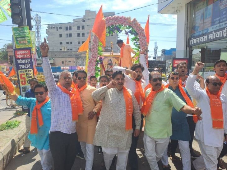 पूरे रास्ते हाथों से खिंचा भगवान परशुराम का रथ:भगवान परशुराम की शोभायात्रा में झांकियों से दिया जल-पर्यावरण संरक्षण का संदेश