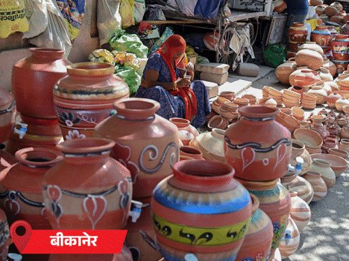 बीकानेर में गर्मी से बचाने के लिए कर्मचारी पक्षियों के पिंजरे को बारदाने से कवर करके रखे हैं। ठंडक के लिए इन पर पानी छिड़का जा रहा है।