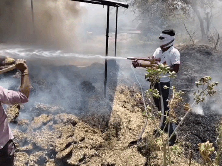 कोटा में भूसे के ढ़ेर समेत चार जगहों पर आग:कुन्हाड़ी में गोदाम में आग तो शंभुपुरा में हाईड्रा मशीन जली, ट्रेचिंग ग्राउंड फिर धधका