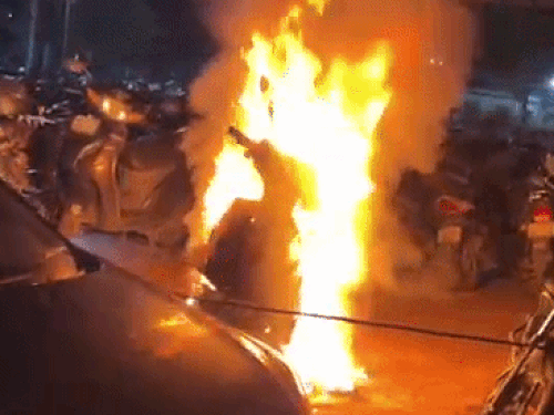 अजमेर में इलेक्ट्रिक स्कूटी में लगी आग, VIDEO:रेलवे स्टेशन के स्टाफ पार्किंग में शॉर्ट सर्किट से हुआ हादसा