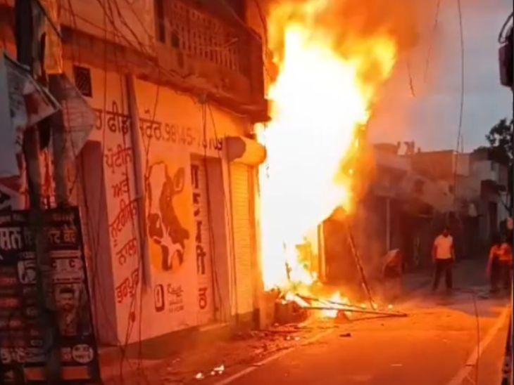 जगराओं में मनियारी शॉप पर लगी आग:शॉर्ट सर्किट से भड़की, सारा सामान जला; एक करोड़ तक के नुकसान की आशंका