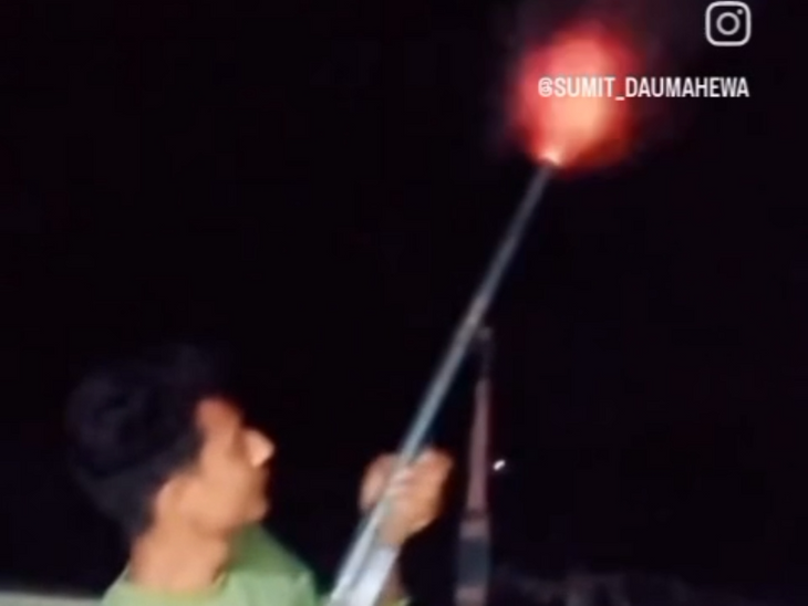 इसके 2 सेकेंड के बाद वह युवक सोफे पर बैठा दिखाई देता है जबकि, उसके सामने रखी टेबल पर एक बंदूक और उसके साथ ही रखे 21 कारतूस दिखाई दे रहे हैं। वीडियो आगे बढ़ता है तो युवक अपना चहरा दिखाता है। उसके हाथ में सिगरेट भी है। पूरे वीडियो के बैकग्राउंड म्यूज़िक में ‘कौन रोकेगा मुझ, कोई नहीं’ बज रहा है। इस वीडियो पर युवक की इंस्टाग्राम आईडी ‘सुमित दाऊ महेवा’ भी फ्लैश हो रही है।
