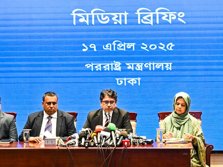 मीडिया से बात करते हुए बांग्लादेशी विदेश सचिव मोहम्मद जशीम उद्दीन।