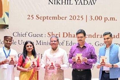 नारनौल के लेखकों की पुस्तक का विमोचन करते हुए केंद्रीय शिक्षामंत्री धर्मेंद्र…