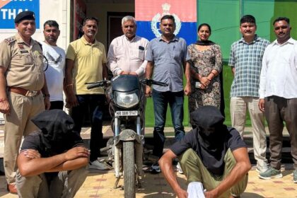 पुलिस टीम की गिरफ्त में नीचे बैठे दोनों आरोपी और साथ में…