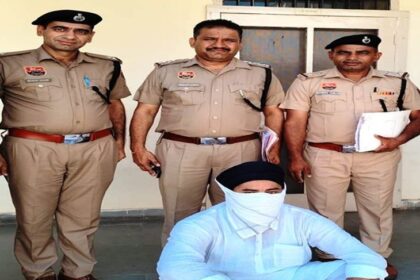पुलिस की गिरफ्त में आरोपी हरदीप सिंह।कुरुक्षेत्र के पिहोवा में हवाई फायरिंग…