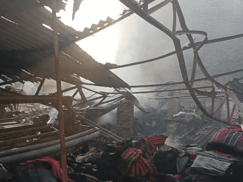 पानीपत में कंबल फैक्ट्री में आग लगने से जला सामान।पानीपत जिले के…