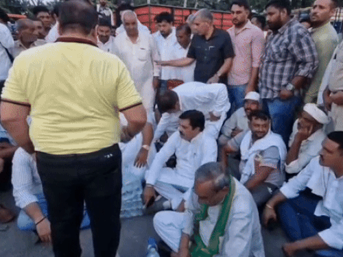 नई अनाज मंडी के बाहर प्रदर्शन, किसानों के साथ जमीन पर बैठे…