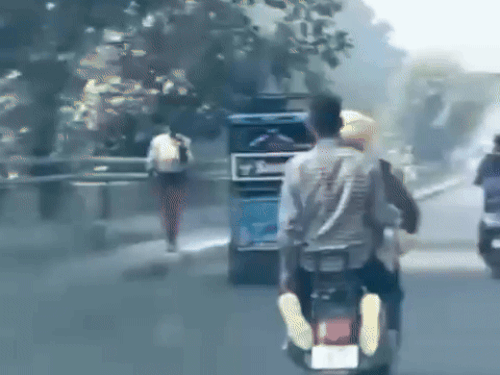 हथकड़ी पकड़े स्कूटर चलाता पुलिस कर्मीलुधियाना में कैदियों व हवालातियों को कोर्ट…