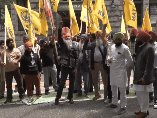 कनाडा में भारतीय दूतावास के बाहर प्रदर्शन करते हुए खालिस्तान समर्थक।खालिस्तान समर्थक…