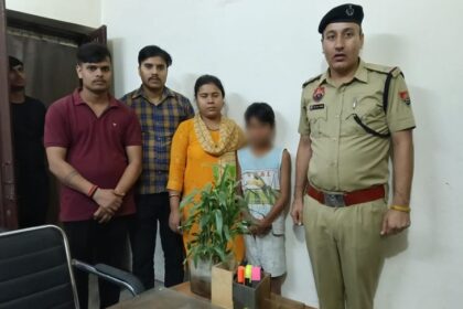 पंचकूला में परिवार से बच्चे को मिलवाते हुए पुलिस टीम।पंचकूला पुलिस ने…
