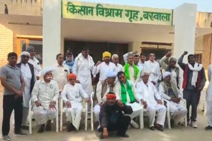बरवाला रेस्ट हाउस में बैठक करते हुए किसान नेता।हिसार में संयुक्त किसान…