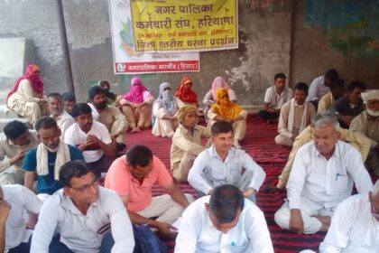 हिसार जिले में नारनौंद नगरपालिका के प्रांगण में बुधवार को कर्मचारियों ने…