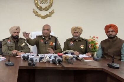 प्रेसवार्ता कर आरोपियों के बारे में जानकारी देते पुलिस अधिकारीपंजाब में गैंगस्टर्स…